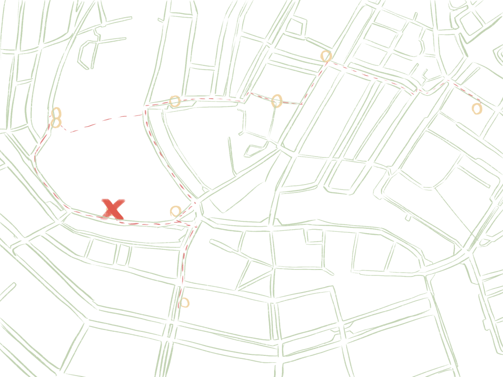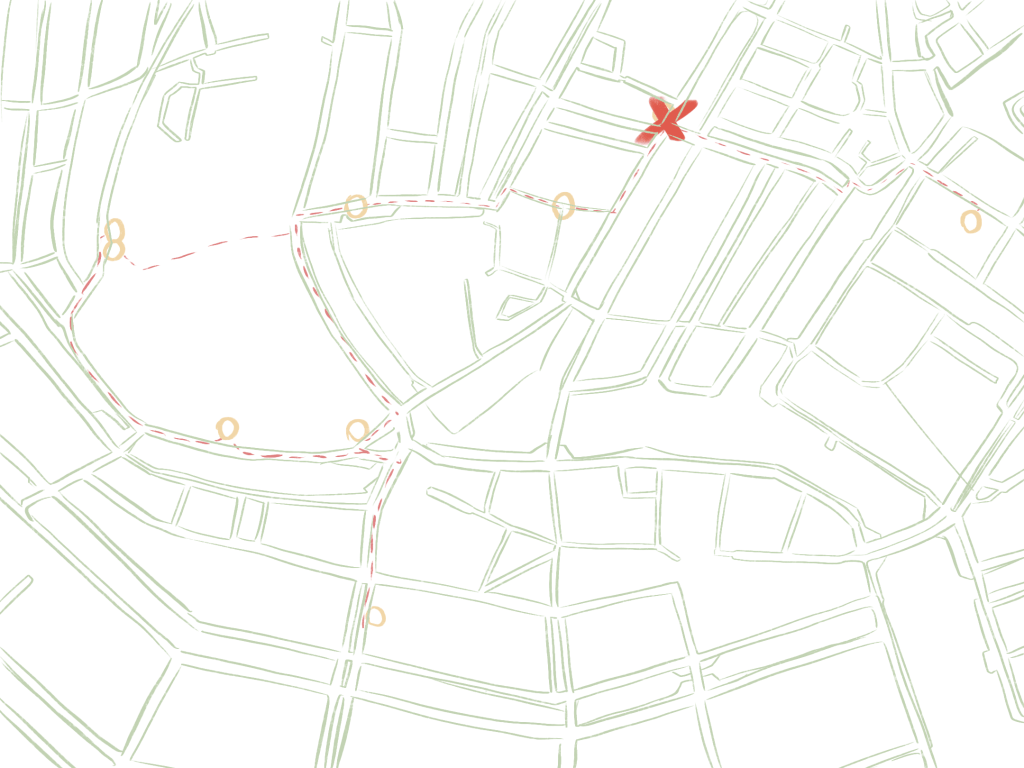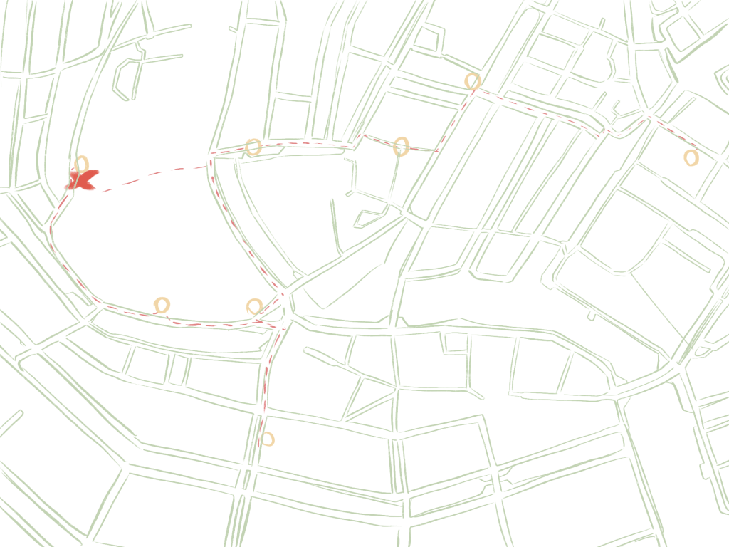 Leaving Fort van Sjakoo behind, we’re retracing our steps, crossing familiar canals, and going back towards the center, through the Oudemanhuispoort passage.